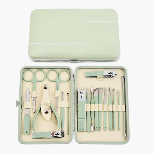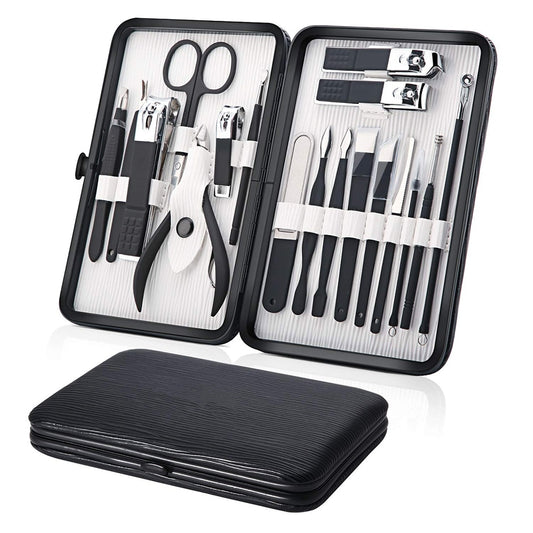 High Quality Stainless Steel Manicure Pedicure Kit Nail Clipper Set Foot Care Set Nail Cutter 18 In 1 Kit With Portable Case